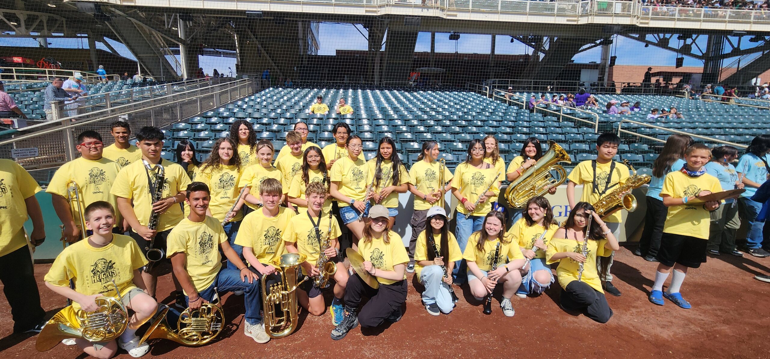 A long-standing vision of the Heights MS band program has been to instill in students the understanding that music and music education extend beyond the confines of the classroom and into the broader community. It’s also important for a school community to recognize the greater impact music education has within the community. Heights recognized that another Albuquerque-based band program shared this philosophy; thus, a natural partnership emerged between Heights MS and James Monroe MS. This collaboration evolved into a regional initiative centered on a joint performance of the national anthem in response to the Albuquerque Isotopes’ annual School Day Matinee events. The Isotopes extend open invitations to school ensembles for national anthem performances through an audition process for the matinee day.