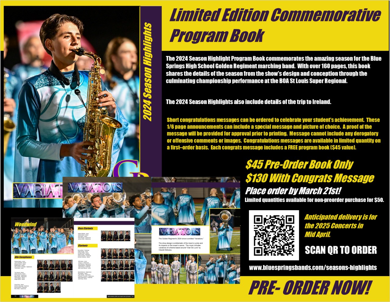 We started the promotion of the site through the sale of our annual season highlight program book. Outside of this, we’ve had information shared through our parent meetings and volunteer fair. Throughout the marching season, parents have been provided handouts with the site address for all payment requirements referencing the site. The marching festival and golf tournament promotional materials have all utilized this web address using QR codes to help direct users to the site. And finally, through WIX’s email marketing tools, we’ve been able to create direct email messaging that allows users to click directly from within the email to site pages. This has been extremely helpful in efforts to take pre-orders on team store merchandise.